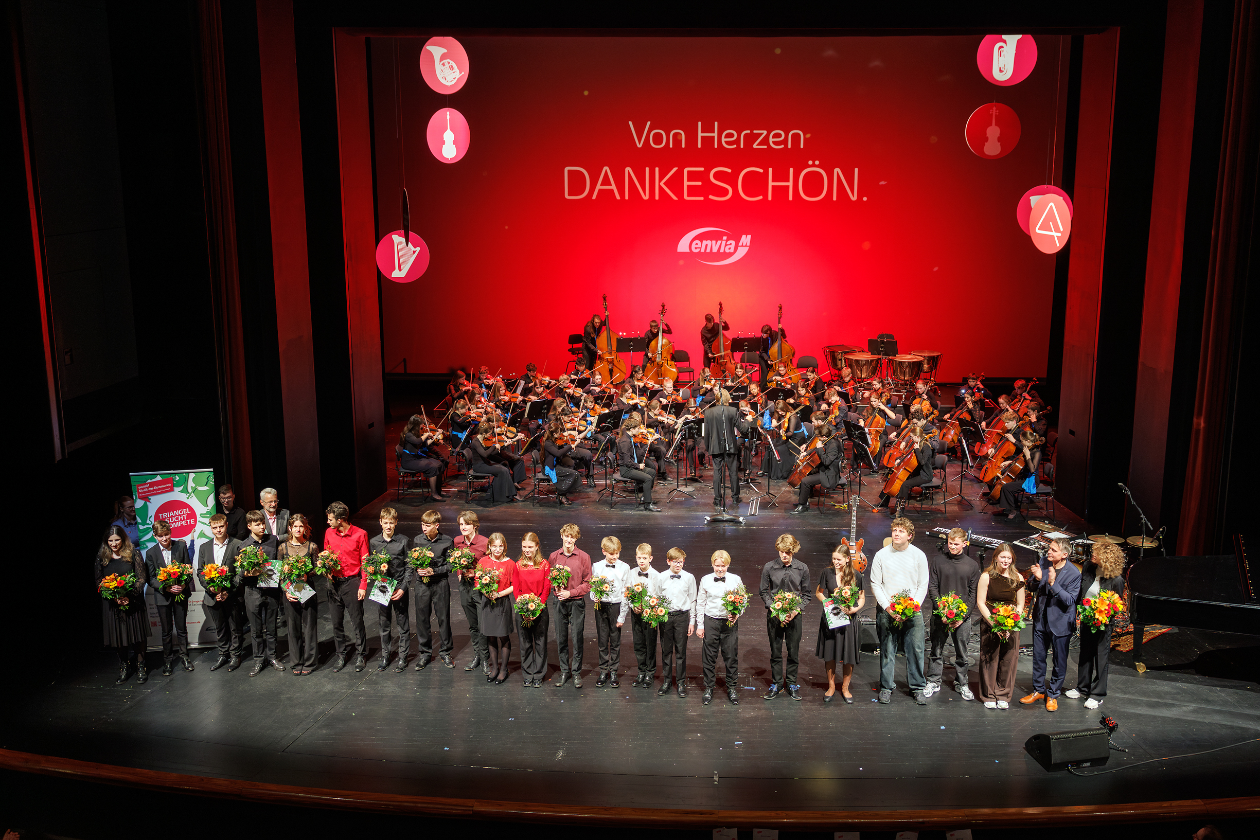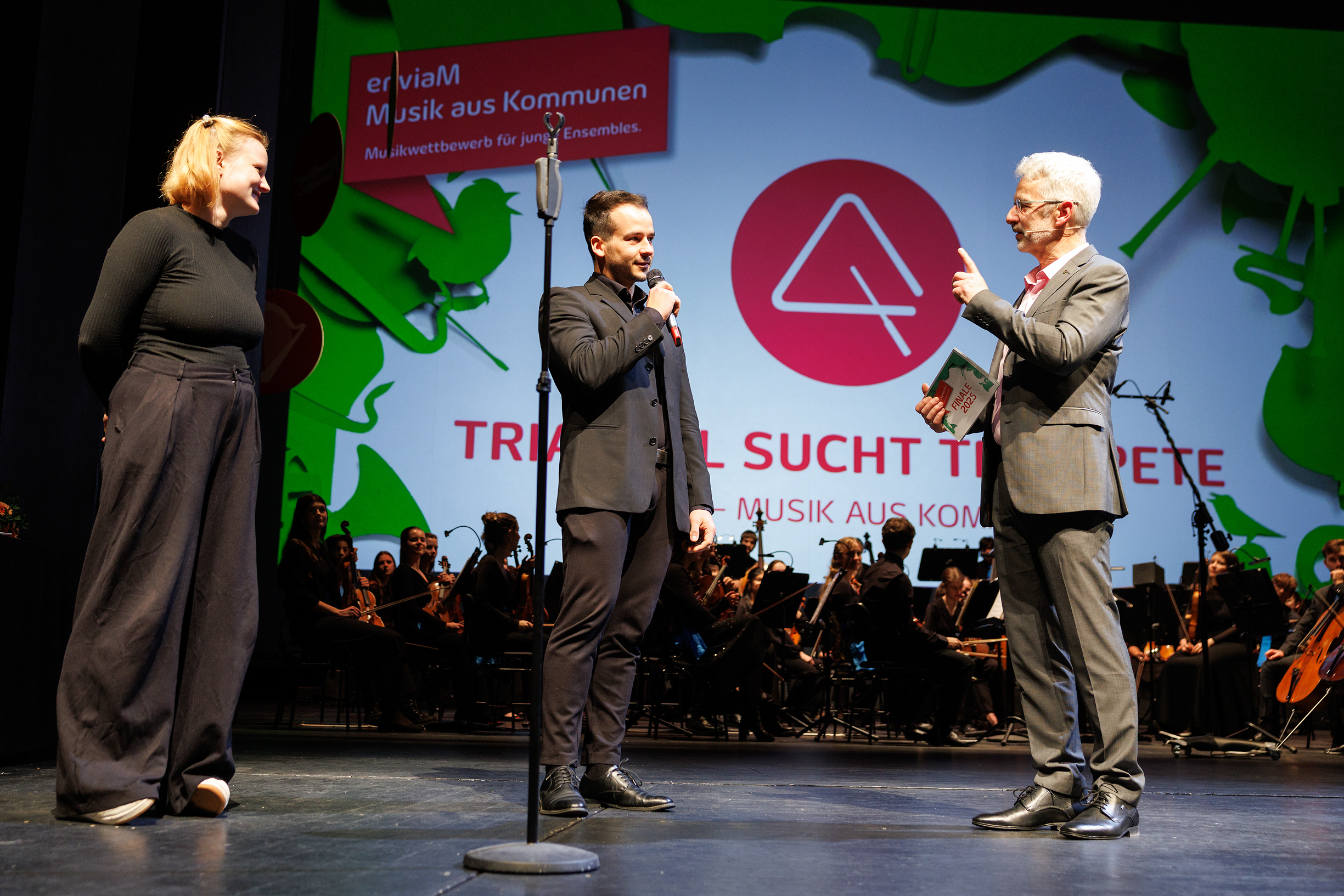 Begleitet wurden die jungen Talente von der Deutschen Streicherphilharmonie unter der Leitung von Wolfgang Hentrich. Für musikalische Vielfalt sorgten zudem die Gewinner des Bandcontests "enviaM – BANDS ON STAGE", die Formation "ART OF SUN", mit Eigenkompositionen und Arrangements von Shir-Ran Yinon.