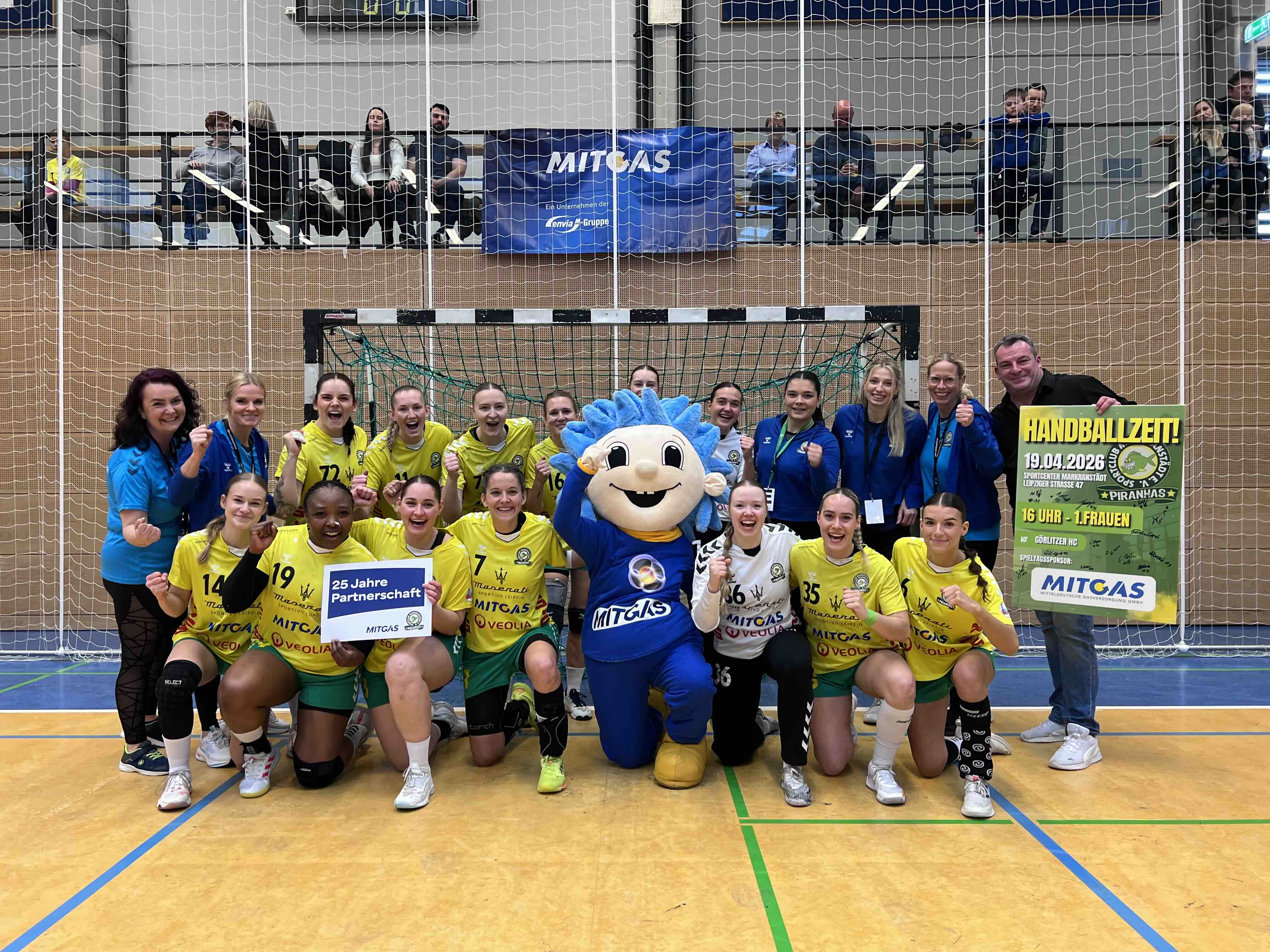 MITGAS unterstützt den SC Markranstädt bis 2028 und blickt auf eine 25-jährige Partnerschaft zurück. Im Rahmen des letzten Saison-Heimspiel der Handballerinnen am Sonntag, dem 19. April 2026, bekräftigte der Hauptsponsor sein Engagement.